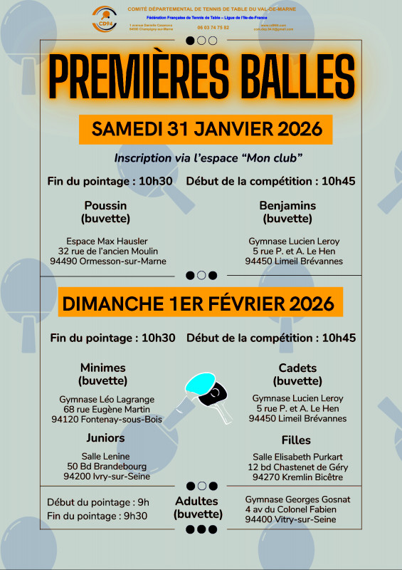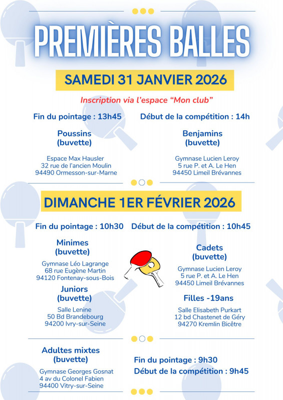 | TOURNOIS PREMIERES BALLES | ||||||||||||||||||||