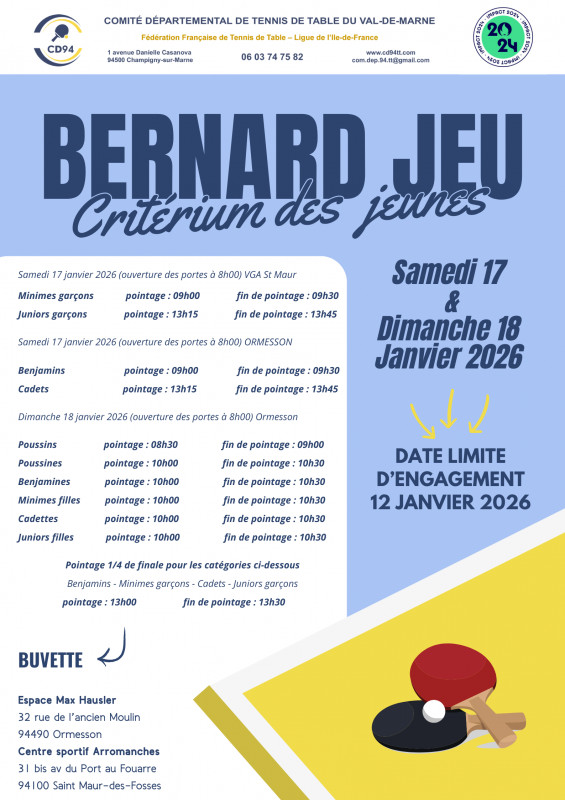 Lieux : Ormesson ou VGA de Saint Maur selon les catégories.